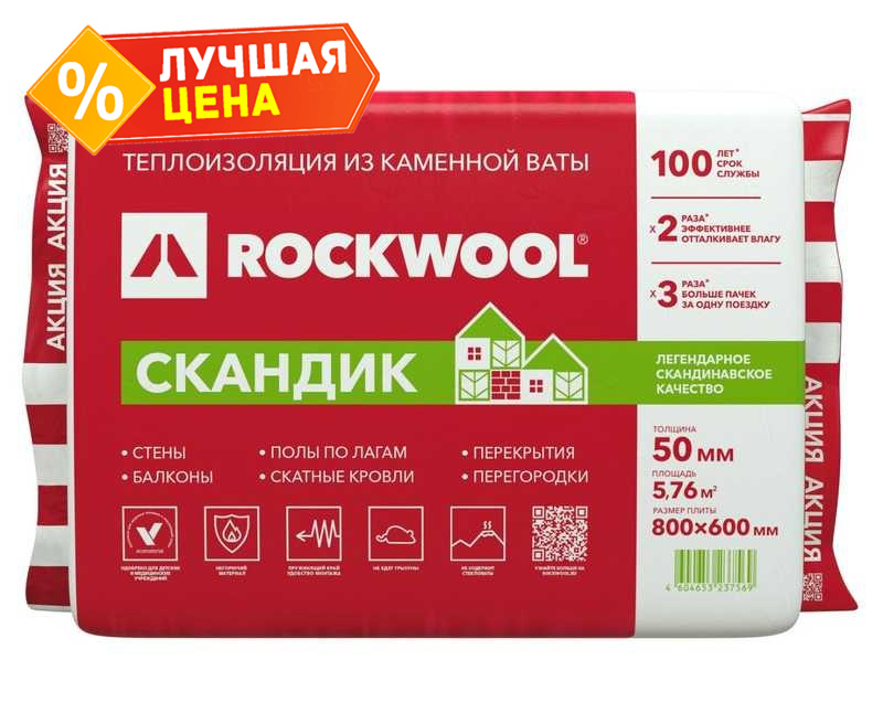 СКАНДИК уникальный продукт ROCKWOOL, уникальность заключается в революционном качестве волокон, которые позволяют подвергать плиты компрессии до 70%. Благодаря вакуумной компрессионной упаковке за одну поездку вы можете перевезти втрое больше материала, чем в обычной упаковке.